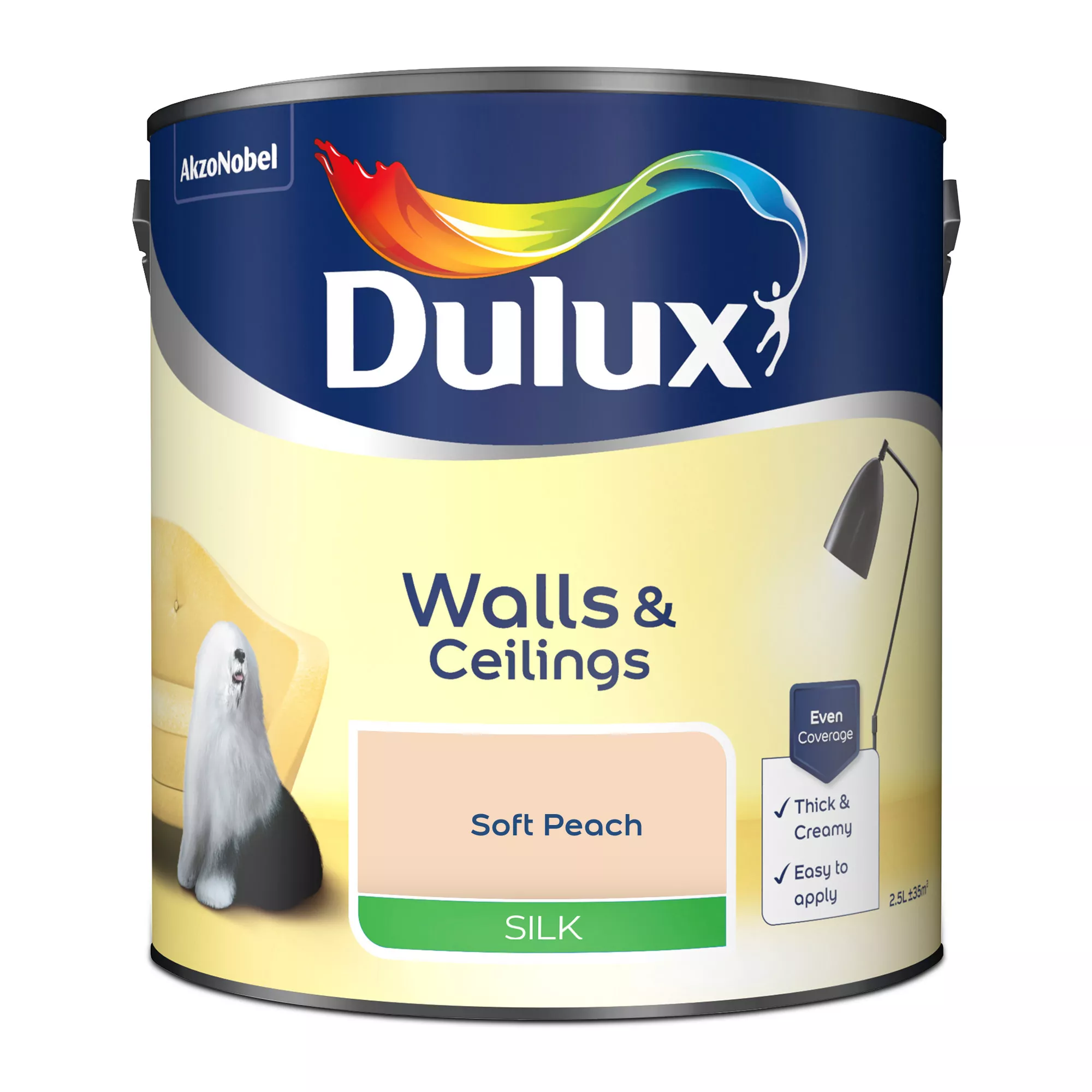 - Dulux Silk is a smooth and creamy emulsion paint for use on walls and ceilings, giving a delicate shine finish. Silk emulsion looks especially good on perfectly plastered or skimmed walls. At B&Q we want you to be satisfied with your colour selection. Not all monitors will display colours the same and paint tins may not show the same colour as your walls do in natural light. We therefore recommend you order a tester pot online or pop in store to pick one up so you are sure that this is the right colour for you.