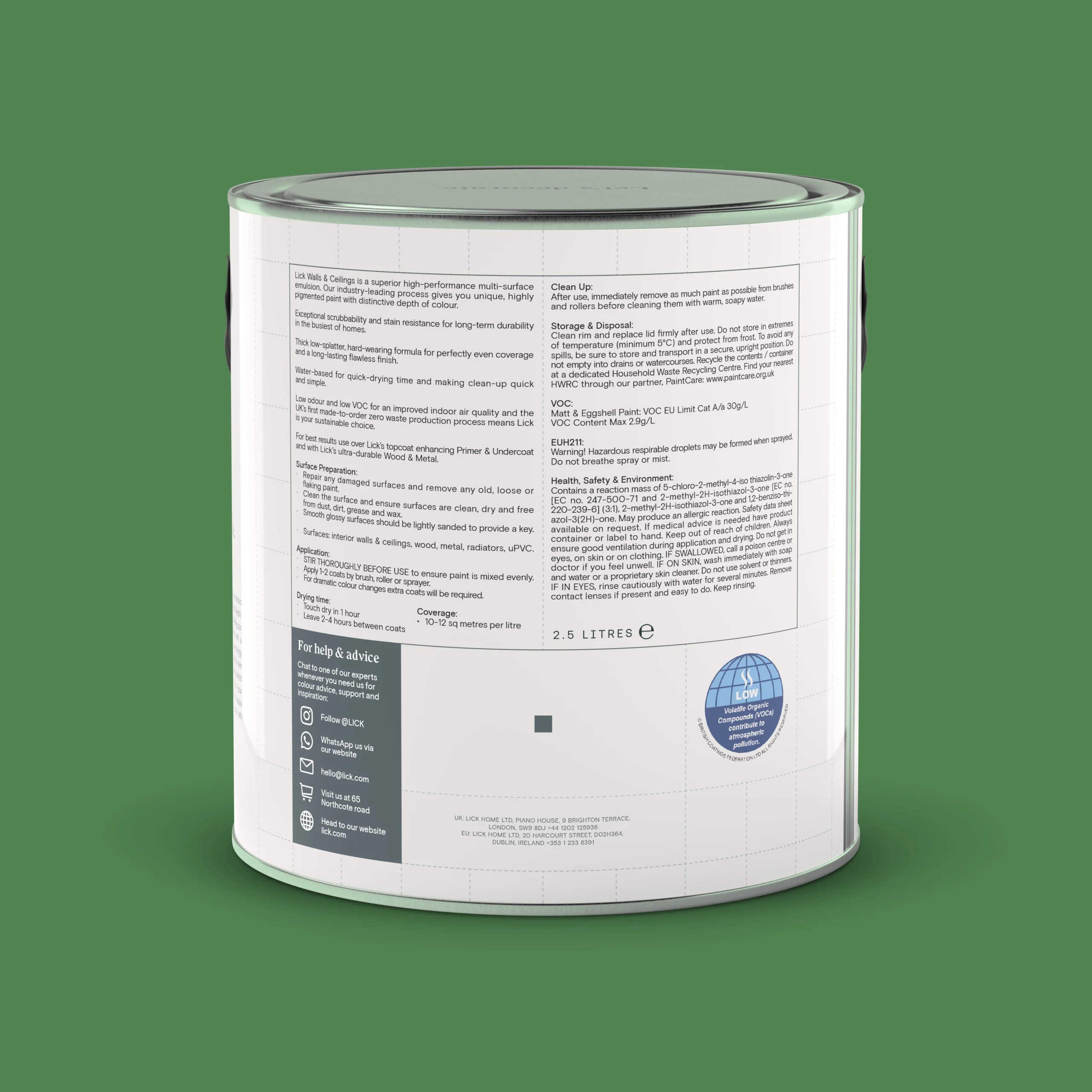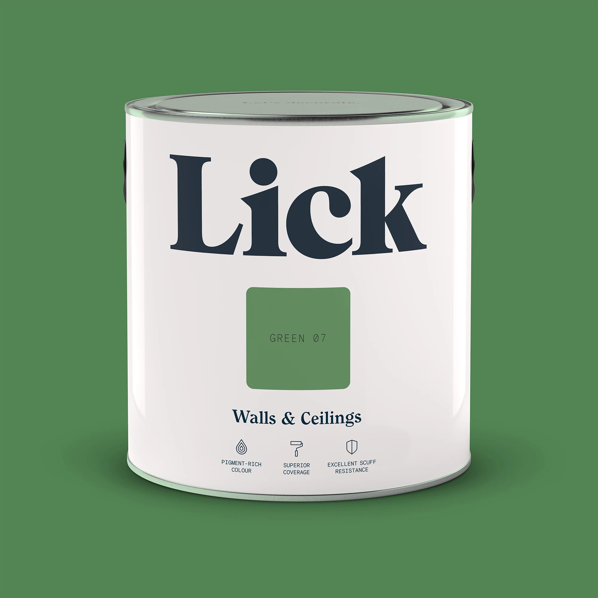 Lick hand-pick the finest pigments for their signature depth of colour. Their high-quality, technologically-advanced formulation is designed for a flawless finish and superior coverage. Green 07 a warm mid green with yellow undertones, giving an optimistic quality which invites balance and harmony into your home. Lick’s matt paint has a smooth finish that is scrubbable and stain resistant. You can cover 10m² – 13m² per litre, and Lick recommends you apply two coats for maximum long-term durability – just make sure your surfaces are clean and dry before you start decorating.