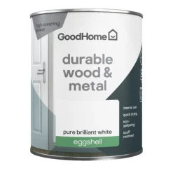 GoodHome Durable Pure Brilliant White Eggshell Metal & Wood Paint, 750ml